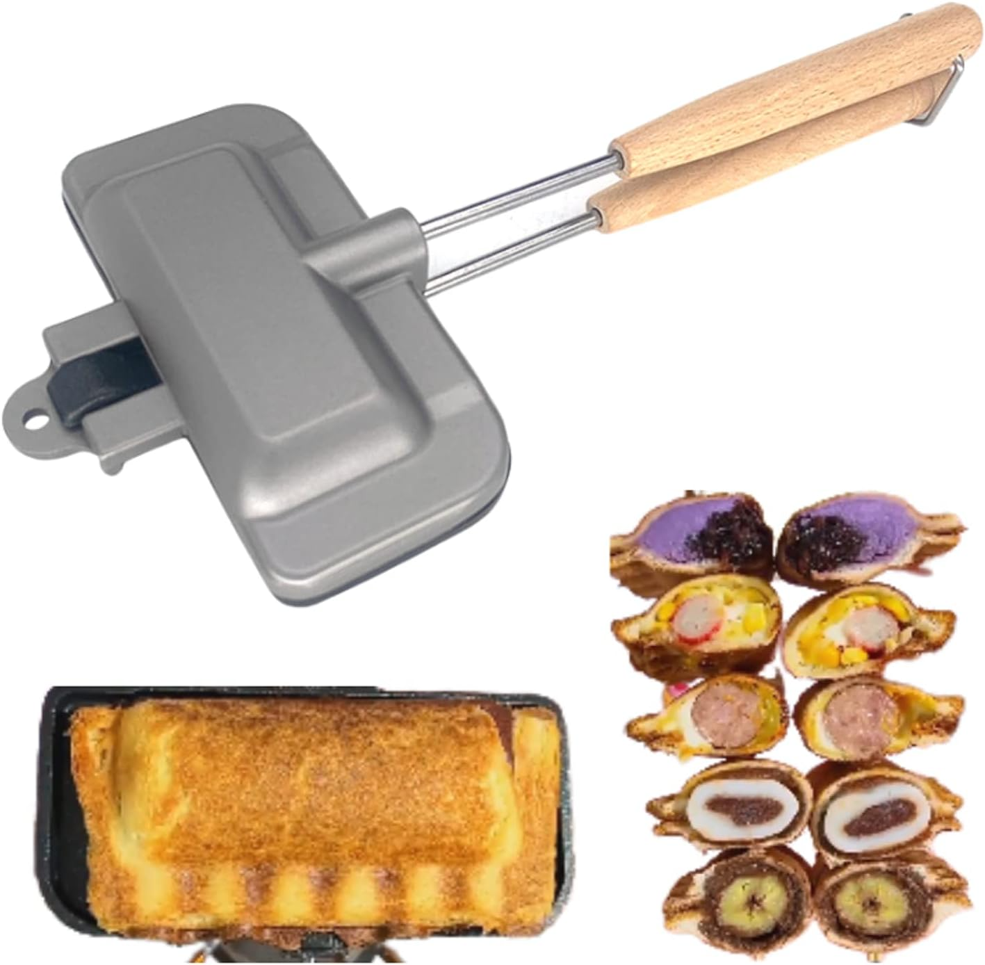 Fabricada en aleación de aluminio resistente al desgaste y a altas temperaturas, esta sandwichera está diseñada para durar. Su mango ergonómico de madera, antideslizante y resistente al calor, garantiza un manejo seguro y cómodo. Además, su borde corrugado único sella perfectamente el pan para resultados más crujientes.